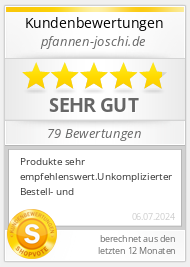 Bei pfannen-joschi.de kaufen Sie Pfannen, Töpfe, Küchenhelfer und vieles weitere für Ihren Haushalt sicher online. Hierzu trägt unter anderem eine komplett SSL-verschlüsselte Verbindung während Ihres gesamten Aufenthalts in unserem Onlineshop bei. Unsere Bewertungen bei Shopvote bestätigen Ihnen ein exklusives Einkaufserlebnis. Schauen Sie auch gerne auf unserer Facebookseite vorbei.
